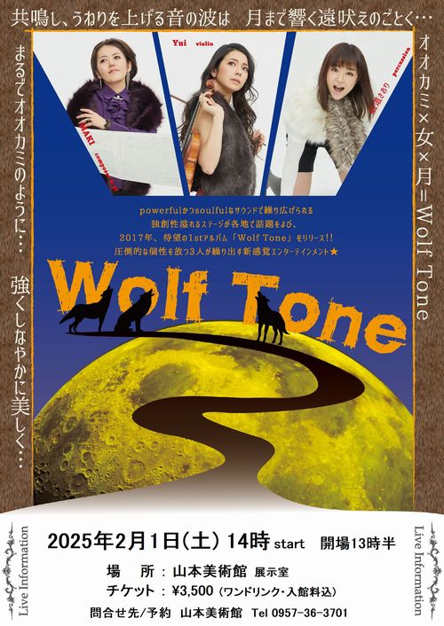 来年の2月1日(土)14時から、美術館展示室で「Wolf Tone コンサート」を開催します。