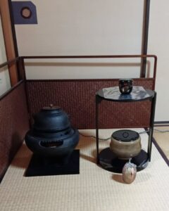 今月から夏のお点前である風炉に変わり、風炉の丸卓棚濃茶点前・薄茶点前の稽古をしました。基本は立礼(テーブル上で行う点前)と同様で、通常サロンで体験レッスンをしている動作なので、半年振りではありましたが早々にお稽古が終わりました。