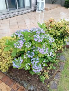 アジサイが大好きな母が丹精込めて育ててきました。母は毎日花を見ては、「アジサイが綺麗よ~!!」と声かけてくるので、私もそのたびに眺めていますが、確かに緑の木々の間にアジサイの花が映えて美しいです。