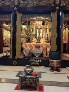 夜になり少し雨が降り始め寒くなってきましたが、本堂は既に80名位の参拝者で埋まり、今回も空いていた最前列に遠慮気味に3人並んで座りました。