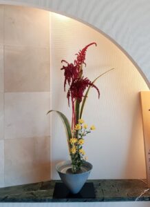 10月最後の池坊華道の稽古は、アマランサスとニュウサイランと小菊の生花新風体でした。