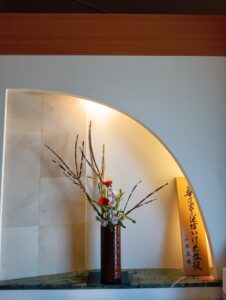 12月の池坊華道の稽古では、いつものように生花新風体と自由花を活けました。