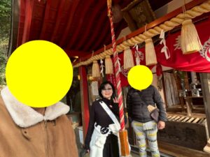 冬場の山の中は寒々としていましたが、3人で楽しくお喋りしながらお参りし、神主さんから節分の「福豆」をそれぞれいただいて帰路につきました。(N)