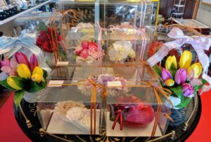 サロンにタンノイスピーカー等のオーディオ機器を設置して家具の配置替えをしたのに伴い、それまでたくさん置いていたフラワーアレンジメントはミュージアムショップの方に移しており、小サイズの作品もこれらと並べて陳列販売しています。