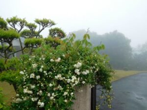 それでも、今朝の小雨に打たれながら濡れている黄色と白色の八重咲きの花は顔を近づけると何とも言えない香りを漂わせており、癒されます。