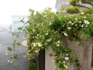 今年は昨年夏の暴風雨の影響で枝が少し折れたのと、また植えこんで十数年が経ち老木化が進み一部の幹が枯れたことや私の剪定の刈り込みが強かったせい等が重なって、例年に比べて幾分か蕾が少ないようです。