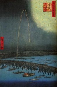 当館でも、何点か常設展示をしている広重の作品「名所江戸百景」は、江戸の名所118ヶ所を描いたシリーズ物で広重最晩年の代表作です。ゴッホが模写したことでも有名な「おおはしあたけの夕立」や「亀戸梅屋敷」などは、このシリーズの作品です。