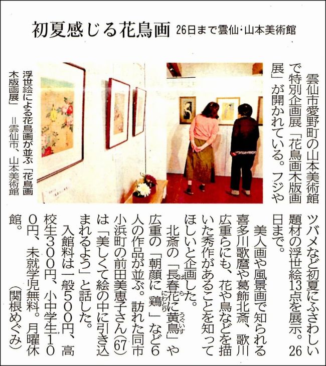長崎新聞に「花鳥画木版画展」開催中の紹介記事が掲載されました。
