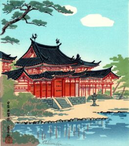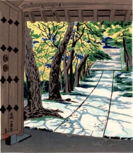 | 徳力富吉郎 「京の四季十二景 宇治平等院」 | 徳力富吉郎 「京の四季十二景 嵯峨二尊院」 |